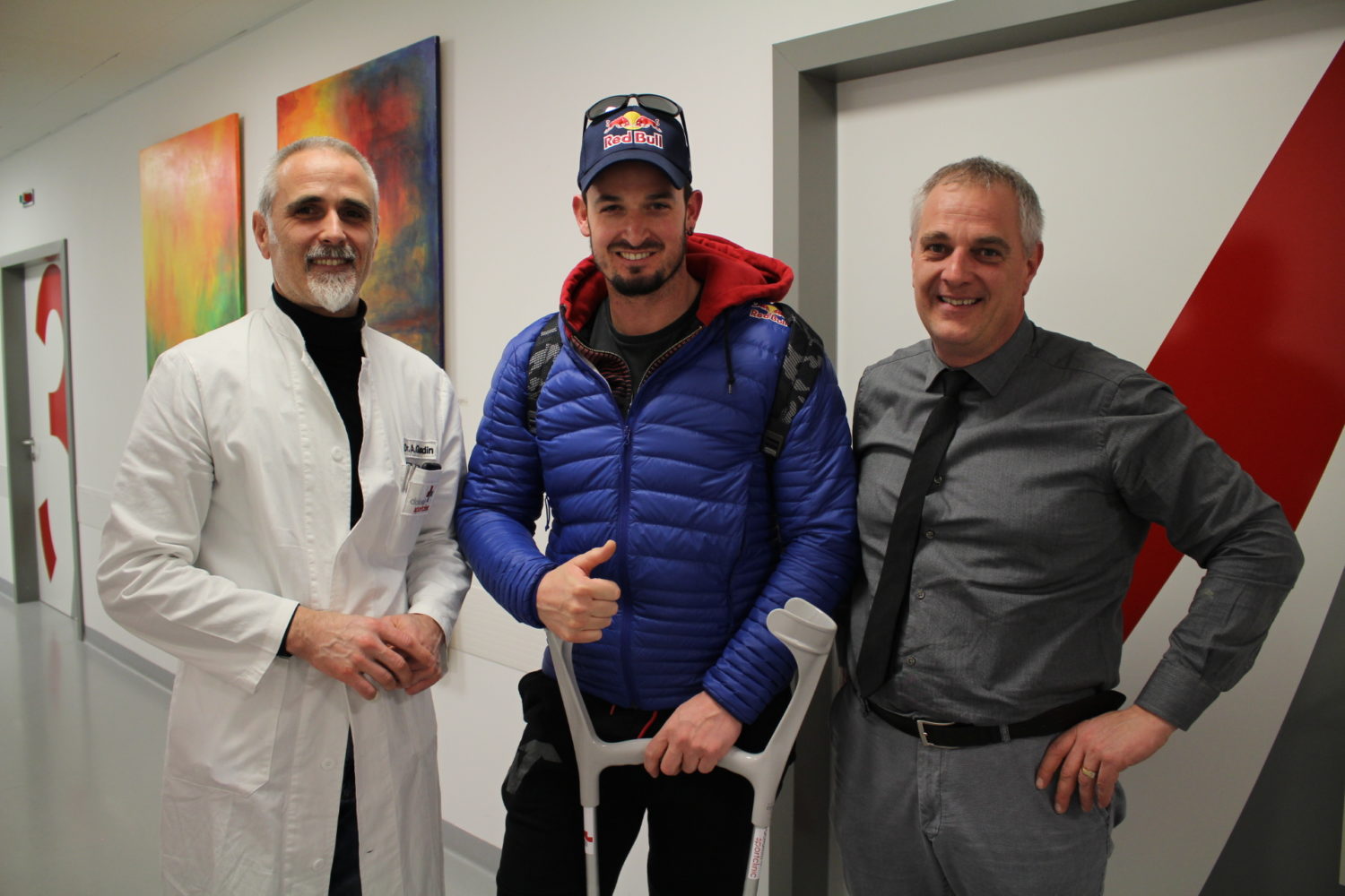 In the picture from left to right: the Medical Director Dr. Arnold Gurndin, the ski star Dominik Paris and the Managing Director Anton Gurndin